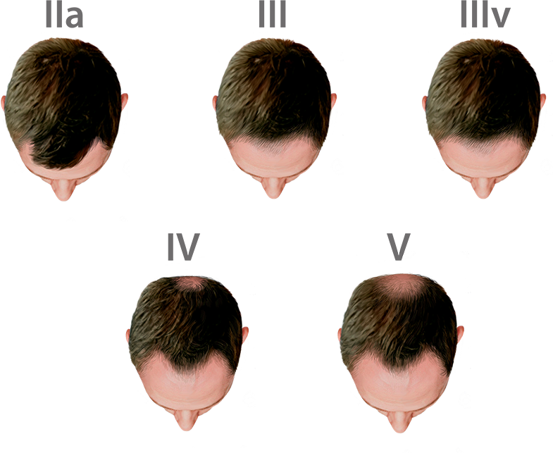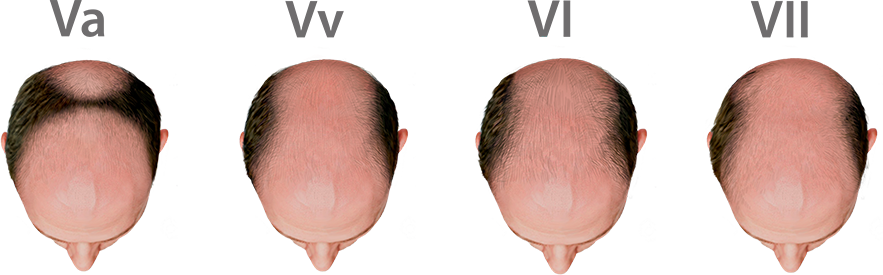 Our Theragrow laser helmet is designed to work with most stages of hair loss but the earlier one starts treating, the better the outcome. There are several scales to help determine the stages of hair loss in women. The most common– the Savin Scale– measures overall thinning as well as density. For men, the Norwood scale is most commonly used. Please see the diagrams below to determine which stages best identify your situation.